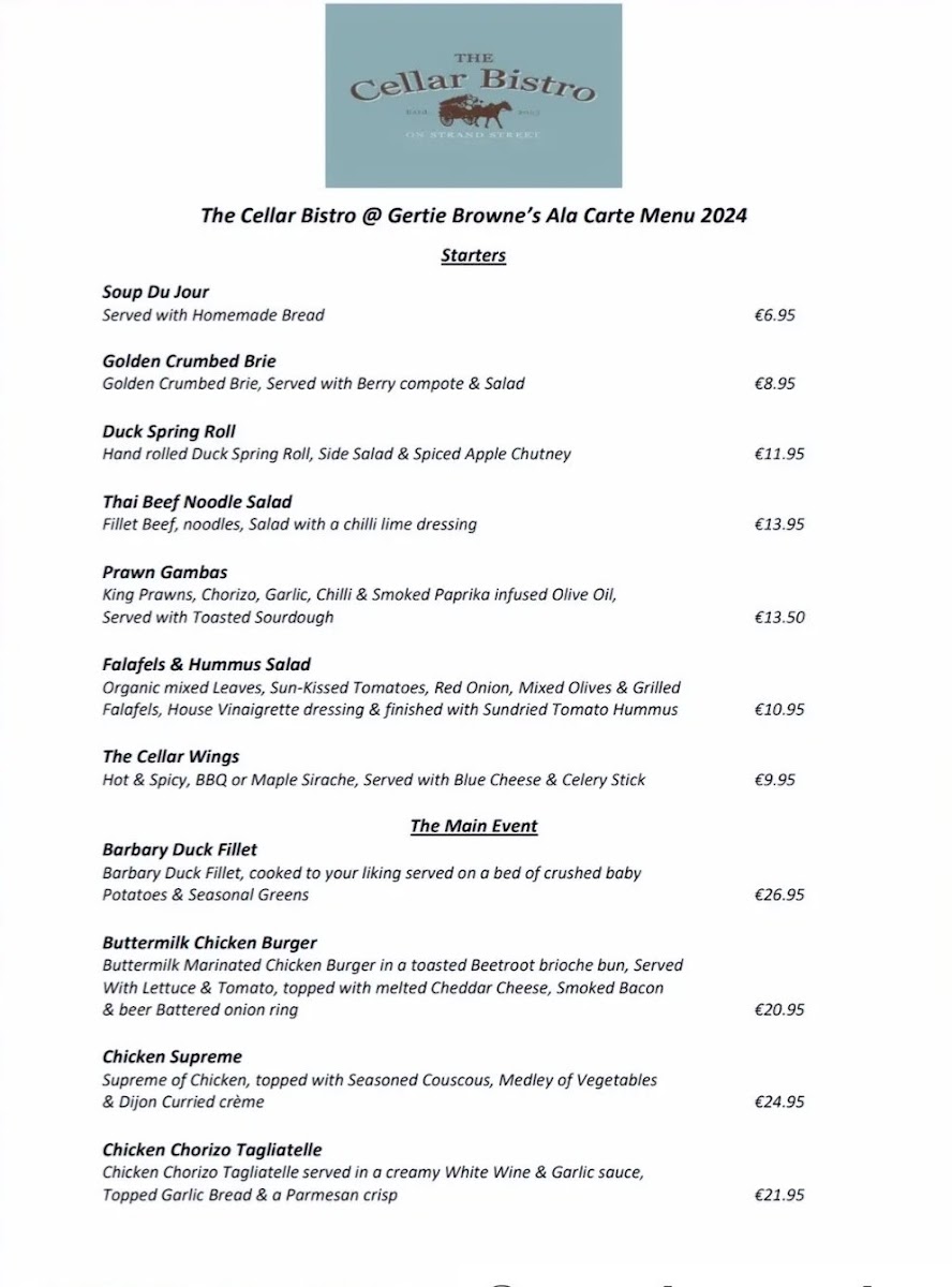 The Cellar Bistro Menu